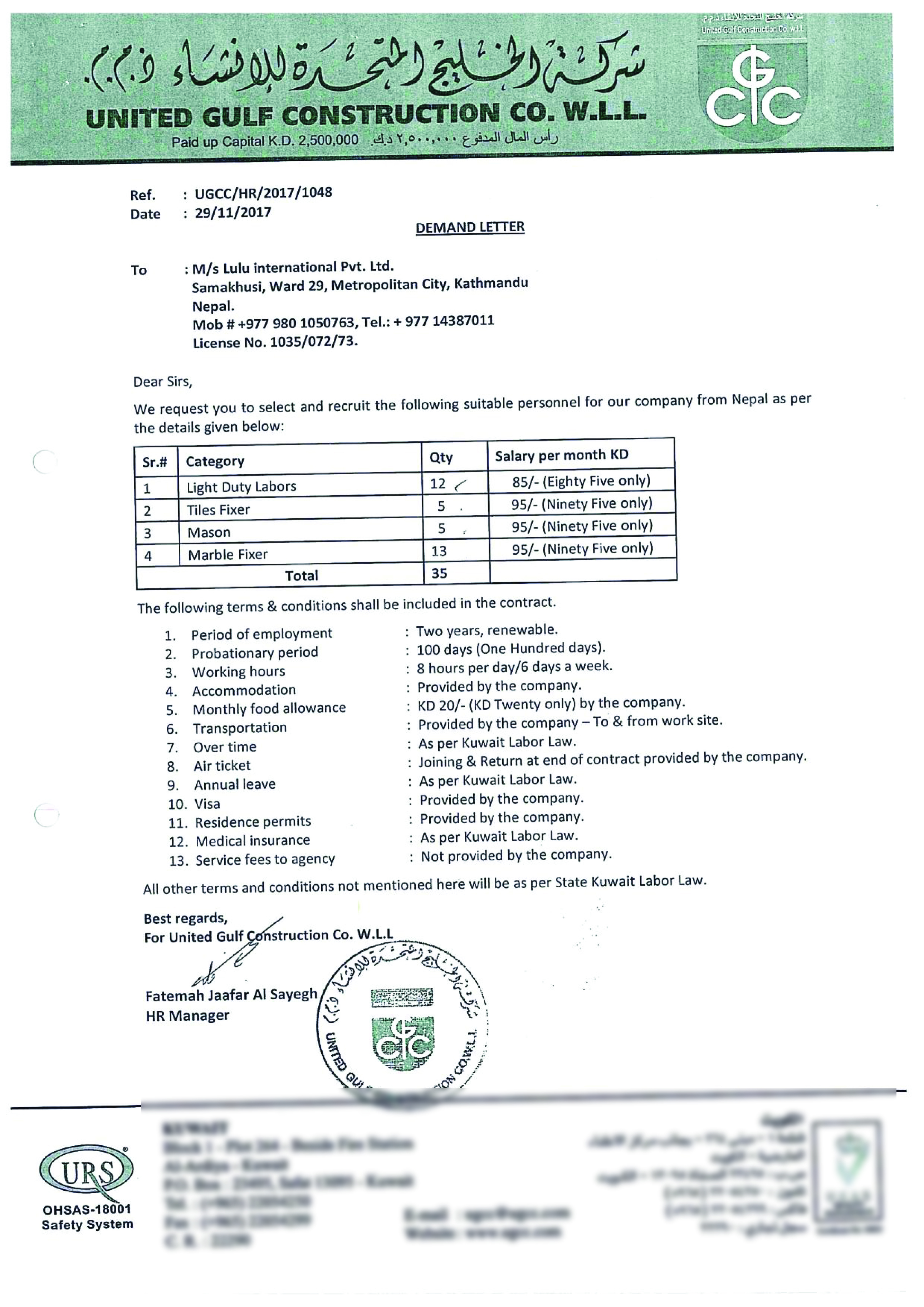 Kuwait Demand Letters